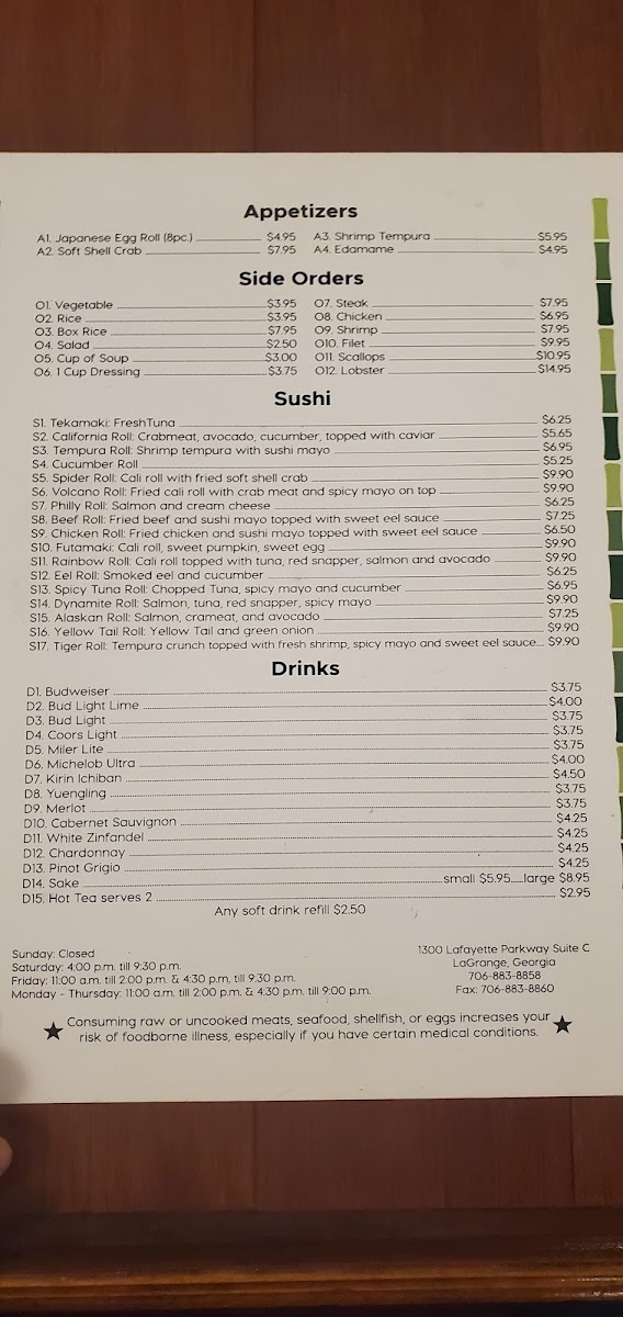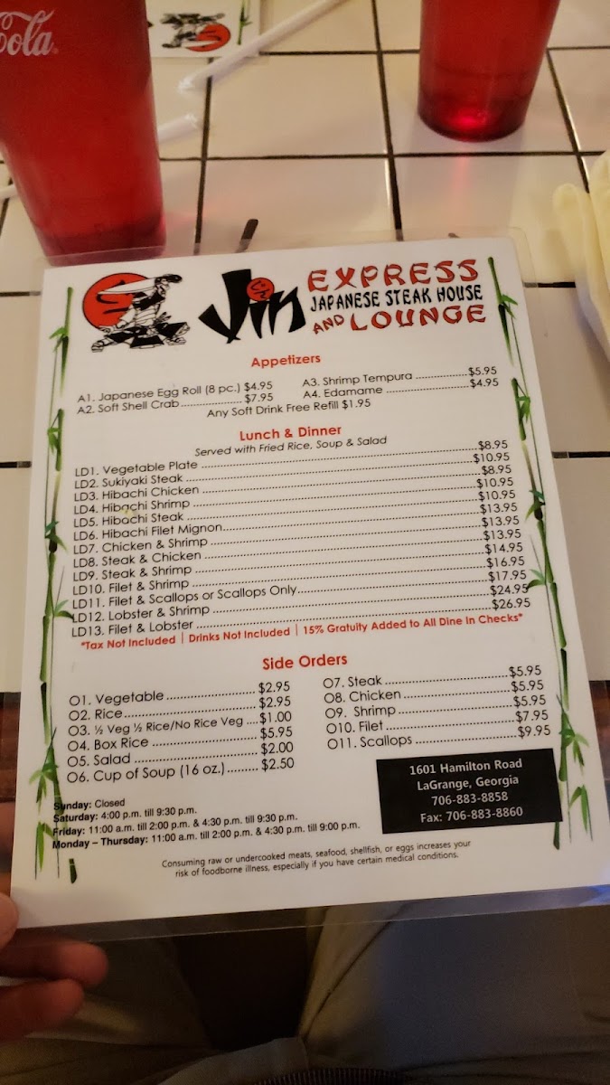 Jin Japanese Steak House and Lounge Menu